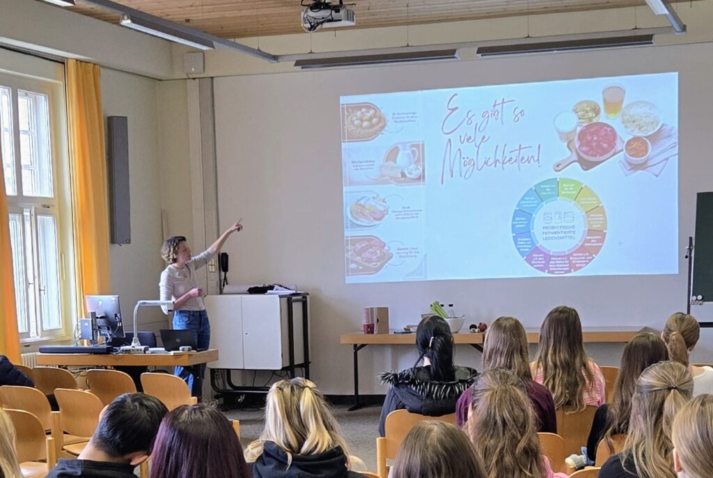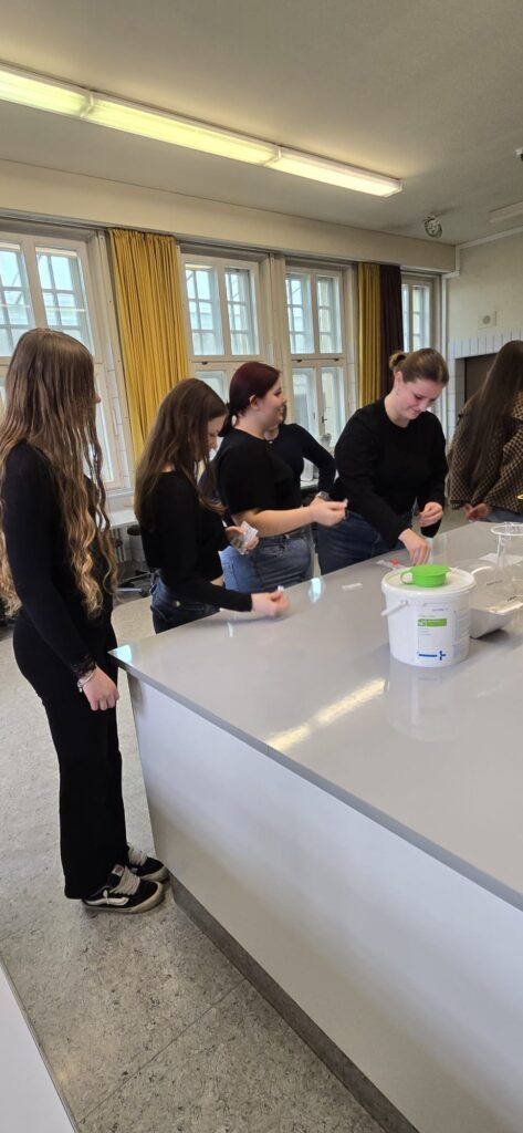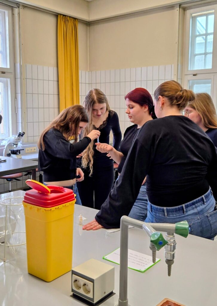 Zeitgleich zu unserer Stippvisite fand in der Berufsschule auch der jährliche Gesundheitstag statt. So hatten unsere Mädchen und Jungs die tolle Gelegenheit, sowohl den Unterrichtsstunden einzelner Fachbereiche wie der Medizinischen Fachangestellten oder der Groß- und Einzelhandelskaufleute als auch den verschiedenen Angeboten des Gesundheitstages, wie Selbstverteidigungskurs oder Info-Stationen zur gesunden Ernährung, teilzunehmen. Und die einzelnen Fachbereiche hatte sich wirklich etwas überlegt für unseren Aufenthalt! So durften etwa die Schülerinnen und Schüler, die die MfA besuchten, Streptokokken-Tests im Labor durchführen und die Gäste der Groß- und Einzelhandelskaufleute hospitierten bei der Erstellung eines Online-Shops, was als Projekt in dieser Klasse angelegt war.