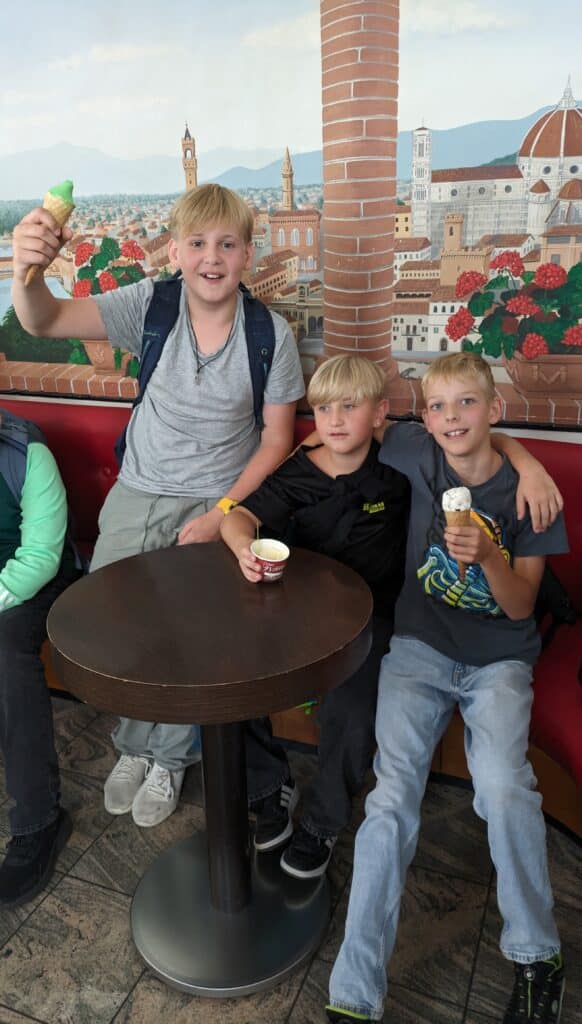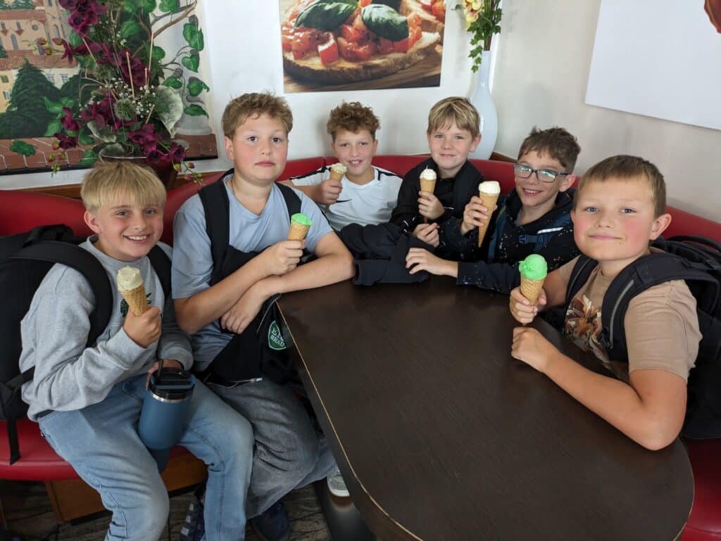 Die Klasse 6a hatte einen „eiskalten“ Start ins neue Schuljahr. Neben Erdbeere, Schoko und Vanille war auch Waldmeister eine beliebte Sorte. Finanziert haben sich die Schülerinnen und Schüler die süße Erfrischung selbst – nämlich über Flaschenpfand. Anstatt die Pfandflaschen in den Mülleimer zu werfen, hatten wir im Klassenzimmer eine Sammelstation für die Flaschen aufgestellt. Die Schüler staunten nicht schlecht, wie viel Geld wir dadurch zusammen bekommen hatten. Ein gelungener Start in in die 6. Klasse.